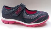 Odlehčené balerínky, barva tmavě modrá v kombinaci se stříbrnou a malinovou, zapínání na jeden suchý zip na gumu, svrchní materiál textil a syntetika, uvnitř textil, vytahovací stélka.