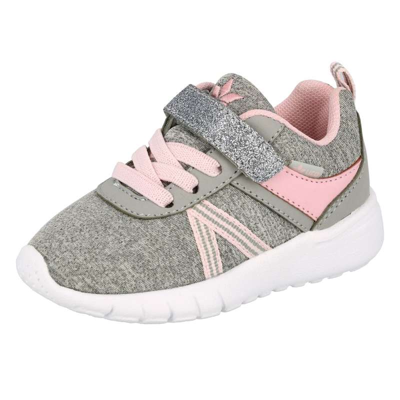 Odlehčené botasky, barva šedá v kombinaci s růžovou a stříbrnou, falešné šněrování, zapínání na jeden suchý zip, svrchní materiál textil a syntetika, uvnitř textil, vytahovací stélka.  Stélka: 23-145 mm, 24-155 mm, 25-160 mm, 26-165 mm, 27-170 mm  celý popis