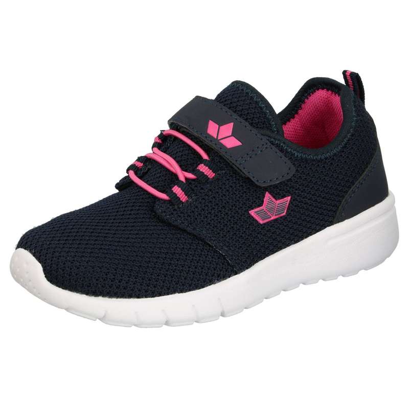 Odlehčené botasky, barva tmavě modrá v kombinaci s malinovou, falešné šněrování, zapínání na jeden suchý zip, svrchní materiál textil a syntetika, uvnitř textil, vytahovací stélka.