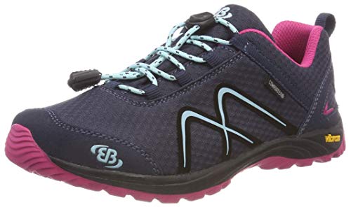 Botasky s membránou Comfortex, VIBRAM, zatahování na olivku, všitý jazyk, barva tmavě modrá v kombinaci s tyrkysovou a malinovou, svrchní materiál textil a syntetika, uvnitř textil. Vytahovací stélka.