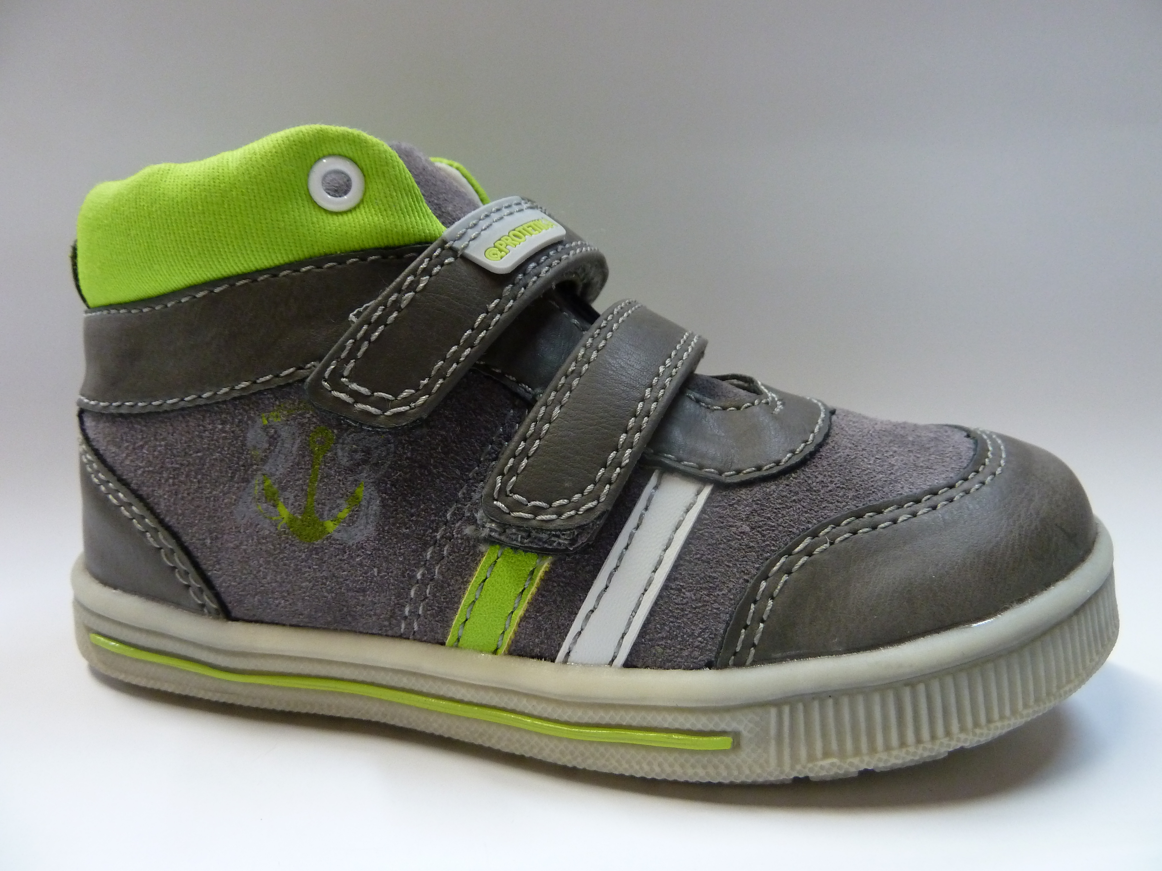 Barva šedá v kombinaci se zelenou a bílou, zapínání na dva suché zipy. Svrchní materiál kůže a textil. Uvnitř kožené včetně stélky-zdravotní stélka s podporou klenby. Boty jsou vhodné i pro vyšší nárt-jazyk je přišitý tak, že se dá bota dost dobře a pohodlně obout.