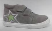 Kožené kotníčkové boty, barva béžová, v kombinaci se zelenou a bílou, aplikace hvězdy, zapínání na dva suché zipy, uvnitř textil, vytahovací tvarovaná stélka, ohebná podrážka, pevná pata.