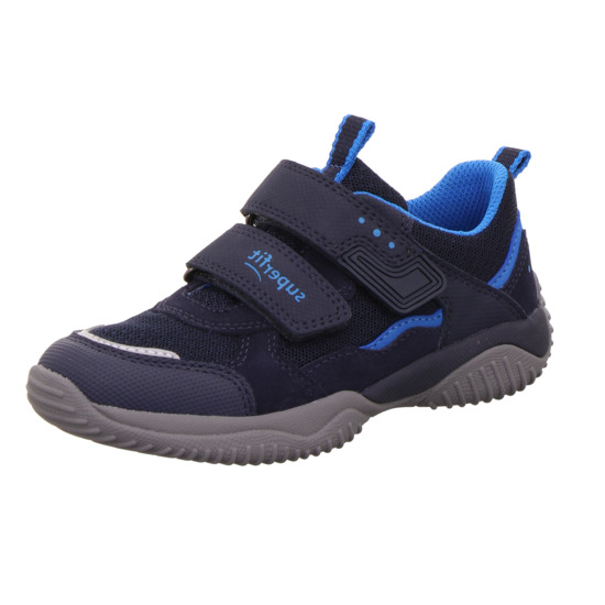 Celoroční obuv značky Superfit. Zapínání na dva suché zipy. Barva tmavě modrá v kombinaci s modrou. Svrchní materiál kůže, textil a syntetika, stélka je textilní. Reflexní prvky.