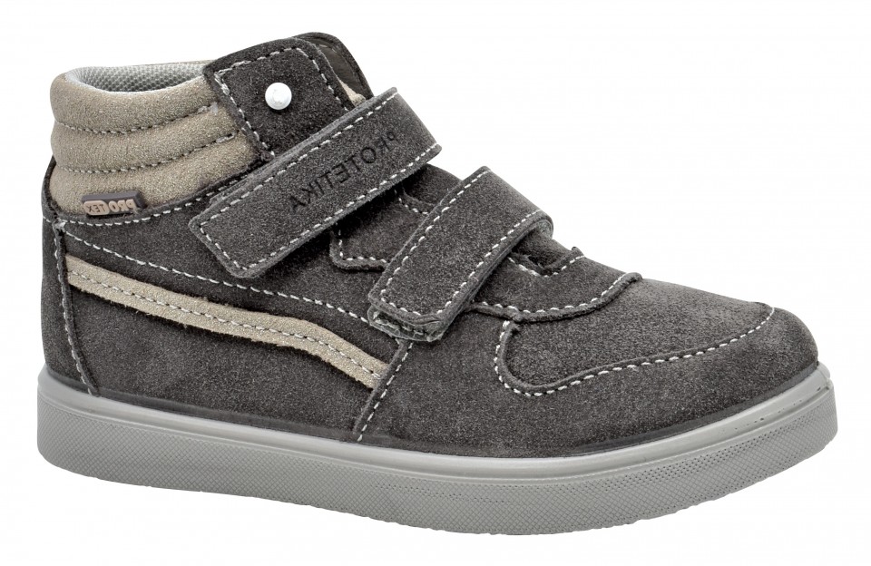Celoroční kotníčkové boty s membránou PRO-tex, všitý jazyk, barva šedá v kombinaci se světle šedou-stříbřitá úprava, zapínání na dva suché zipy, svrchní materiál kůže, uvnitř textil, kožená vytahovací stélka s podporou pro klenbu. Pevná pata, ohebná podrážka.
