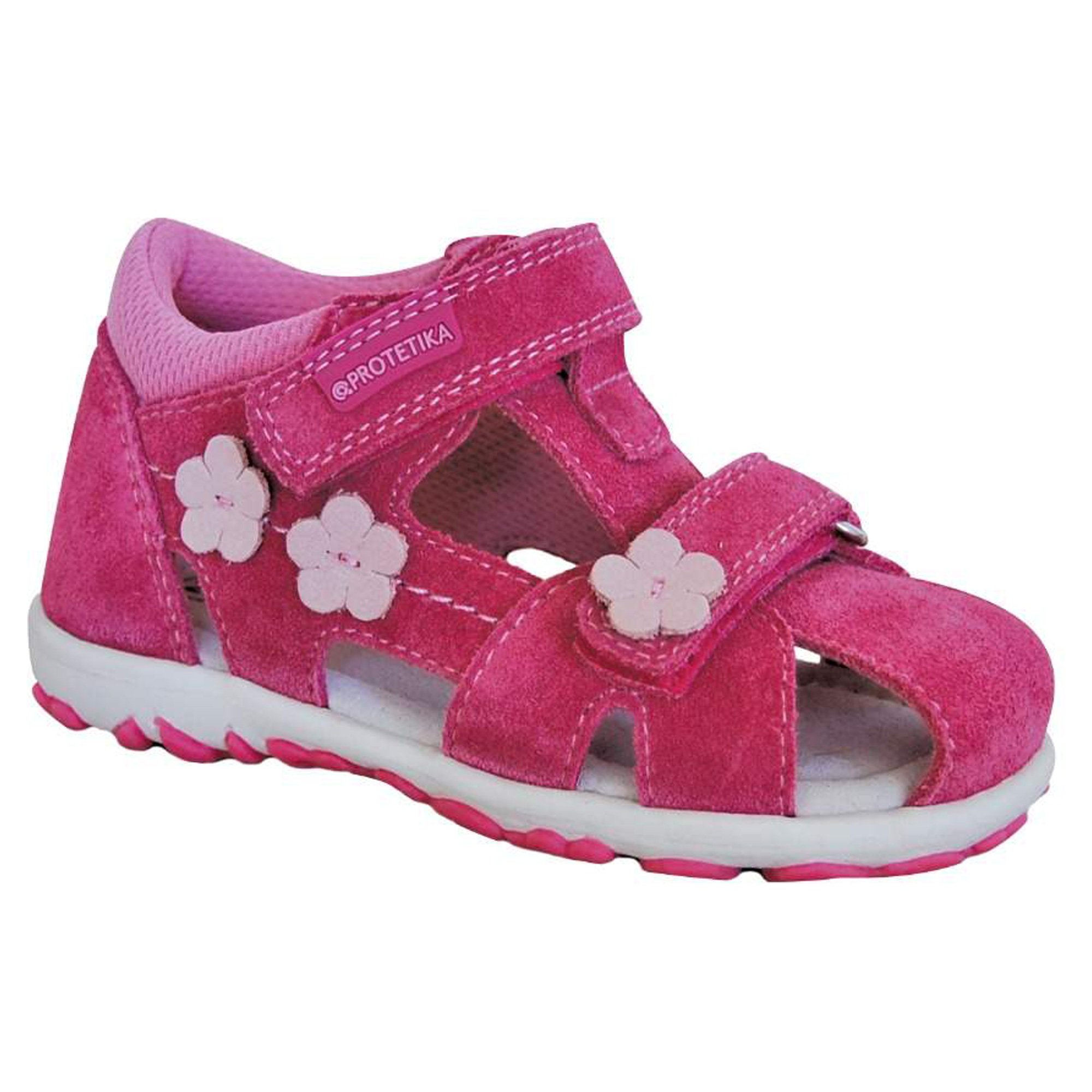 Barva sytě malinová v kombinaci s růžovou. Aplikace kytiček. Svrchní materiál kůže a textil. Uvnitř textil, kožená zdravotní stélka s podporou klenby. Boty jsou vhodné i pro vyšší nárt. Zapínání na dva suché zipy. Pevná plná pata. Ohebná podrážka.