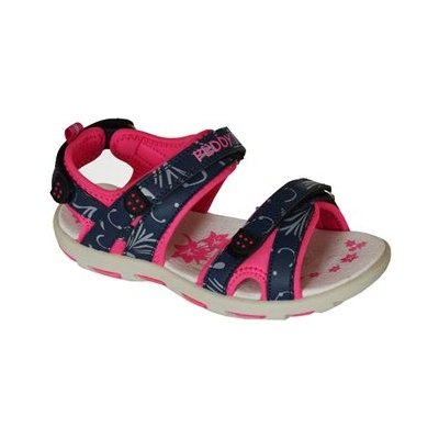 Dívčí sandálky, barva tmavě modrá v kombinaci s malinovou, zapínání na dva suché zipy, na patě také na suchý zip, svrchní materiál syntetika, uvnitř textil, kožená stélka.