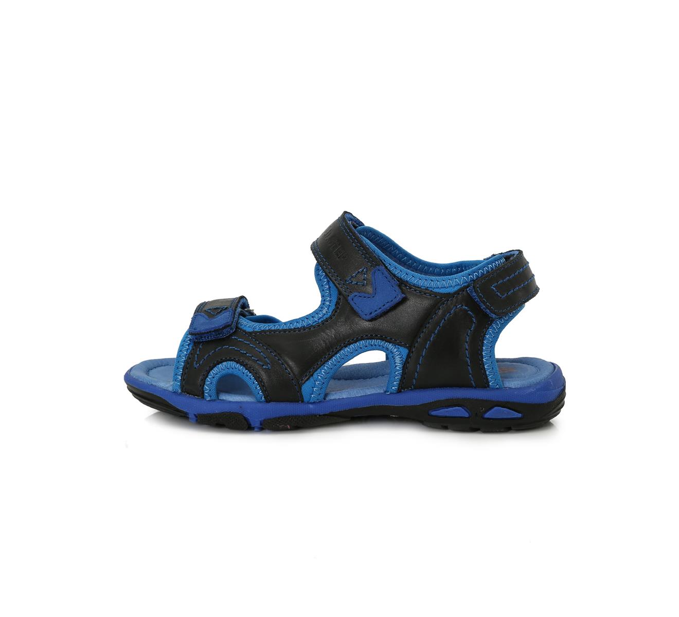 Letní sandálky, barva černá v kombinaci s modrou, zapínání na dva suché zipy, regulce paty na suchý zip, volná pata, svrchní materiál kůže a textil, uvnitř kůže, kožená stélka s podporou klenby. Ohebná podrážka.
