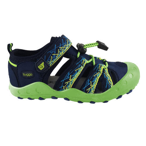 Sportovní sandálky, barva tmavě modrá v kombinaci se zelenou, žlutou a modrou, svrchní materiál syntetika a textil, uvnitř textil, pěnová stélka. Zapínání na jeden suchý zip, plná pata. Špice je chráněna proti okopu.