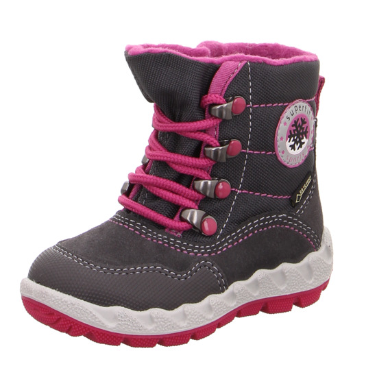 Krásné velice kvalitní zimní boty rakouské značky Superfit, barva tmavě šedá v kombinaci s fuchsiovou, aplikace sněhové vločky, šněrování, jazyk se u této boty dá krásně roztáhnout, takže se bez problému obouvají. Uvnitř boty je velice hřejivý kožíšek. GORE-TEX zabezpečuje optimální prodyšnost a tím vynikající klima uvnitř boty, ve kterém zůstanou dětské nohy v suchu a teple. Svrchní materiál kůže a tvrzený textil. Protiskluzová podrážka.