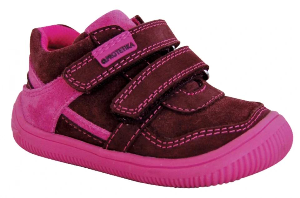 Tvar této boty napomáhá správnému vývoji chodidla. Použité atestované přírodní materiály zabezpečují zdravotní nezávadnost obuvi. Boty jsou slovenské výroby.Celoroční BAREFOOT boty, barva tmavě bordó v kombinaci s růžovou, svrchní materiál kůže, uvnitř textil, zapínání na dva suché zipy, kožená vyta... celý popis