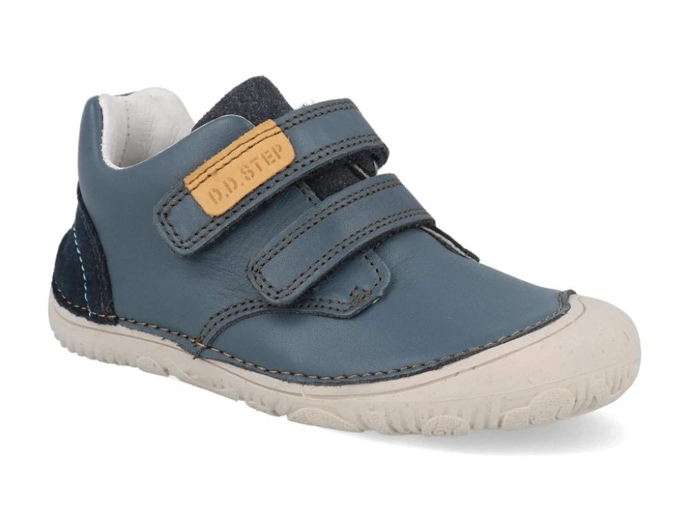Celokožené BAREFOOT boty, zapínání na dva suché zipy, barva tmavě modrá, vytahovací stélka. Ohebná podrážka.