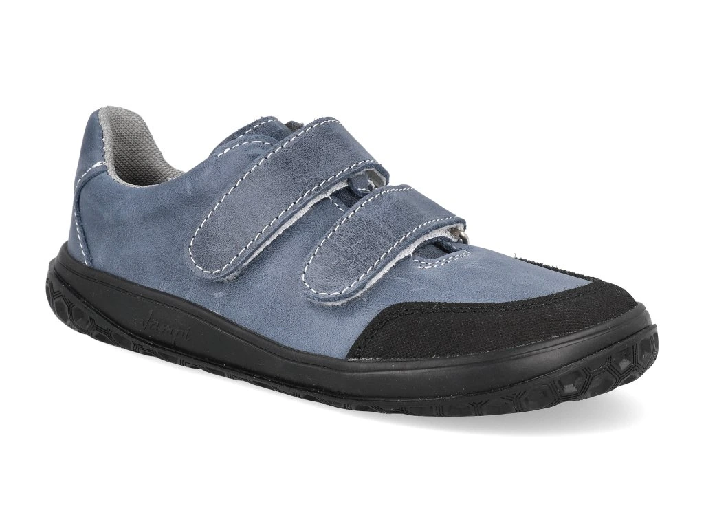 Celoroční BAREFOOT kožené boty, barva modrá, zapínání na dva suché zipy, široká a vyjímatelná textilní stélka, uvnitř textil, který brání proti chladu. Tato obuv splňuje všechny znaky barefoot obuvi. Jde o odlehčenou obuv, která simuluje cvičení, a proto je vhodná pouze na časově omezenou dobu. Doporučuje se v nerovném terénu, jako je zahrada, písečný a kamenitý povrch a podobně. Špice chráněna proti okopu.