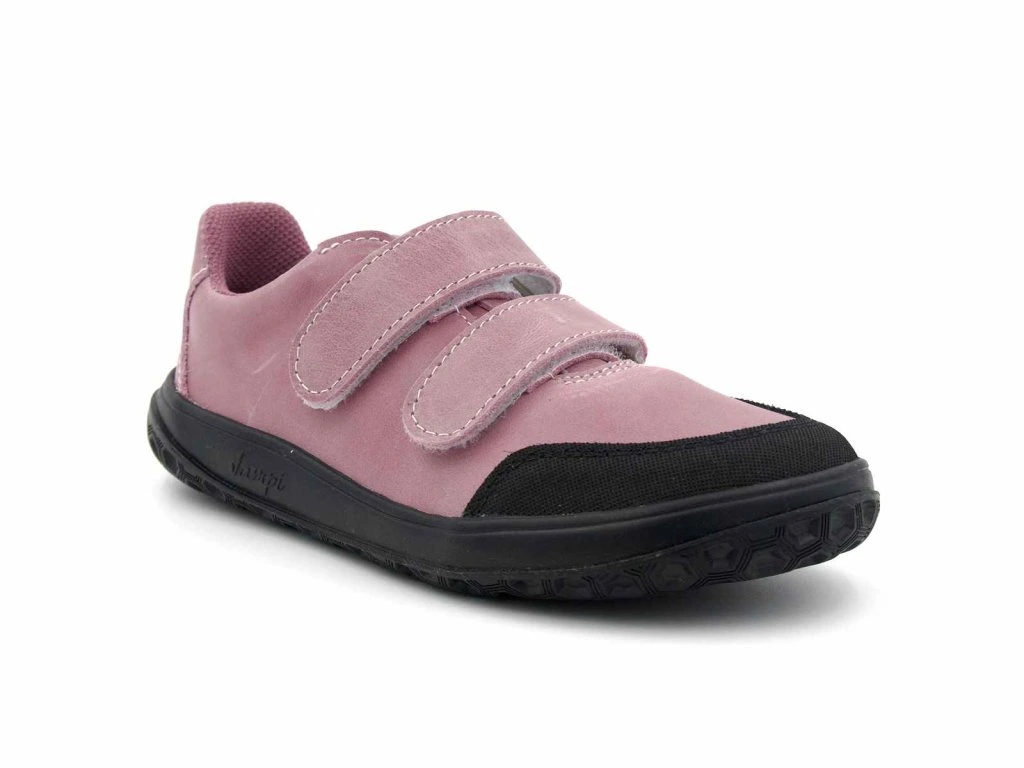Celoroční BAREFOOT kožené boty, barva růžová, zapínání na dva suché zipy, široká a vyjímatelná textilní stélka, uvnitř textil, který brání proti chladu. Tato obuv splňuje všechny znaky barefoot obuvi. Jde o odlehčenou obuv, která simuluje cvičení, a proto je vhodná pouze na časově omezenou dobu. Doporučuje se v nerovném terénu, jako je zahrada, písečný a kamenitý povrch a podobně. Špice chráněna proti okopu.