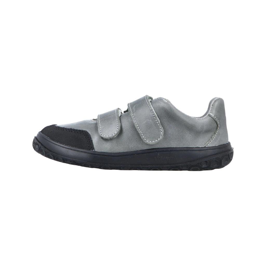 Celoroční BAREFOOT kožené boty, barva šedá, zapínání na dva suché zipy, široká a vyjímatelná textilní stélka, uvnitř textil, který brání proti chladu. Tato obuv splňuje všechny znaky barefoot obuvi. Jde o odlehčenou obuv, která simuluje cvičení, a proto je vhodná pouze na časově omezenou dobu. Doporučuje se v nerovném terénu, jako je zahrada, písečný a kamenitý povrch a podobně. Špice chráněna proti okopu.