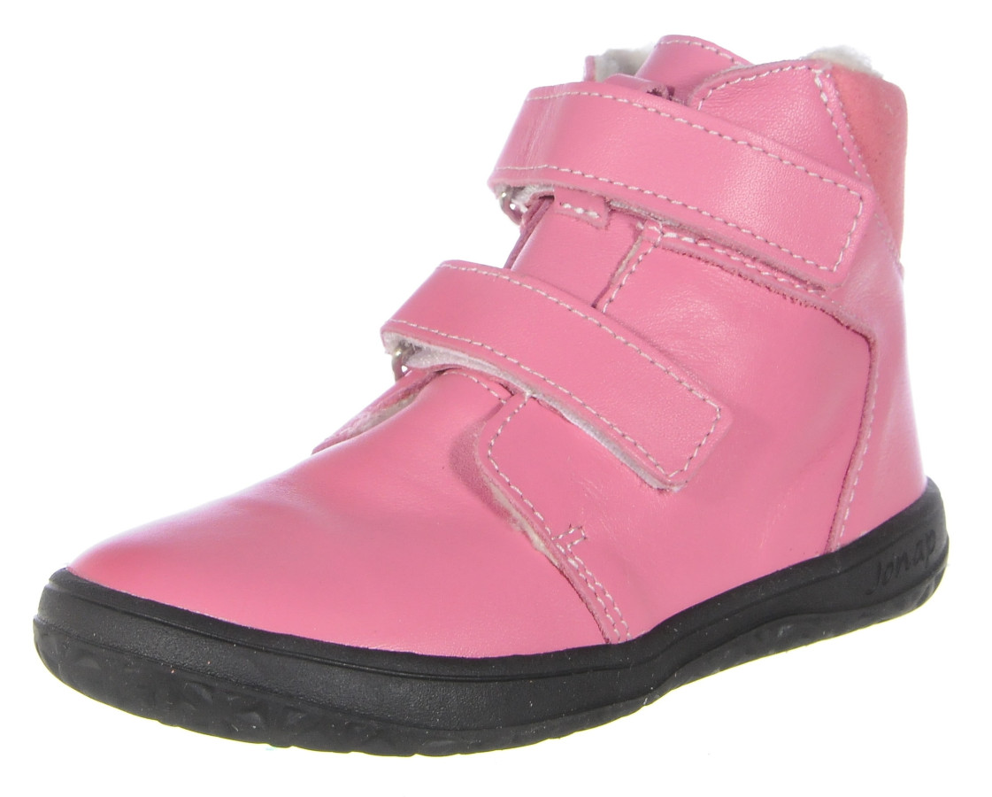 Celoroční BAREFOOT kotníčkové kožené boty, barva růžová, zapínání na dva suché zipy, široká a vyjímatelná textilní stélka, uvnitř textil, který brání proti chladu. Tato obuv splňuje všechny znaky barefoot obuvi. Jde o odlehčenou obuv, která simuluje cvičení, a proto je vhodná pouze na časově omezenou dobu. Doporučuje se v nerovném terénu, jako je zahrada, písečný a kamenitý povrch a podobně. Reflexní prvky.