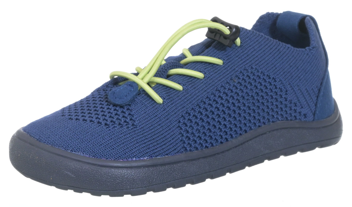 Textilní barefoot boty, prodyšná úprava, barva modrá v kombinaci se zelenou, šněrování se zatahovací olivkou, svrchní materiál textil, uvnitř textil, kožená vytahovací stélka, ohebná podrážka. Široká kulatá špice. Stélka: 22-140 mm, 23-150 mm, 24-155 mm, 25-160 mm, 26-165 mm, 27-175 mm, 28-180 mm, 2... celý popis