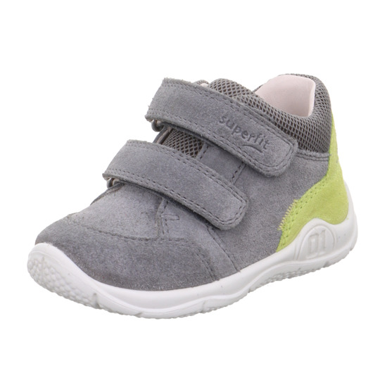 Celoroční obuv značky Superfit. Zapínání na dva suché zipy. Barva šedá v kombinaci se zelenou. Svrchní materiál kůže a textil, uvnitř kožené včetně vytahovací stélky. Ohebná podrážka. Pevná pata.