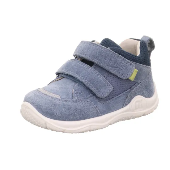 Celoroční obuv značky Superfit. Je extrémně lehká s maximálně ohebnou podešví, pevným opatkem a kvalitní koženou stélkou. Zapínání na dva suché zipy. Barva světle modrá v kombinaci s tmavě modrou. Svrchní materiál kůže a textil, uvnitř kožené včetně vytahovací stélky.