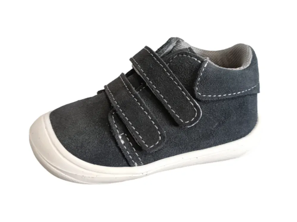Celoroční kotníčkové boty, barva tmavě šedá, zapínání na dva suché zipy, svrchní materiál kůže, uvnitř textil, textilní vytahovací stélka s podporou pro klenbu, ohebná podrážka, pevná pata.