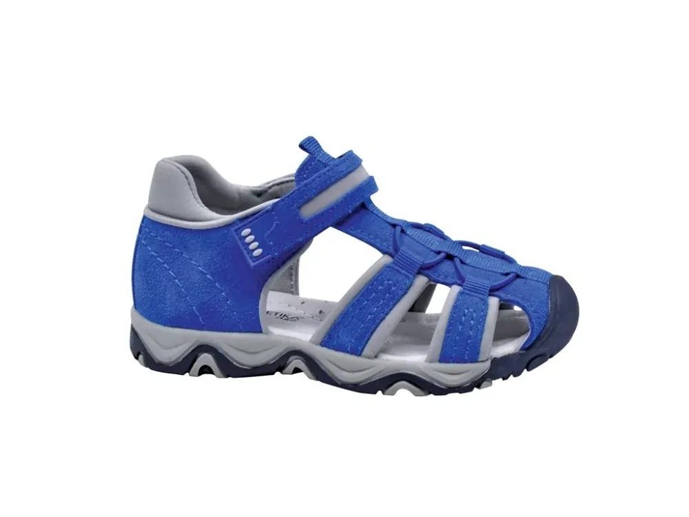 Tvar této boty napomáhá správnému vývoji chodidla. Použité atestované přírodní materiály zabezpečují zdravotní nezávadnost obuvi. Barva modrá v kombinaci s béžovou. Svrchní materiál kůže a textil. Uvnitř textil, kožená zdravotní stélka s podporou klenby. Boty jsou vhodné i pro vyšší nárt. Zapínání na jeden suchý zip. Pevná plná pata. Špice je chráněna proti okopu. Ohebná podrážka.