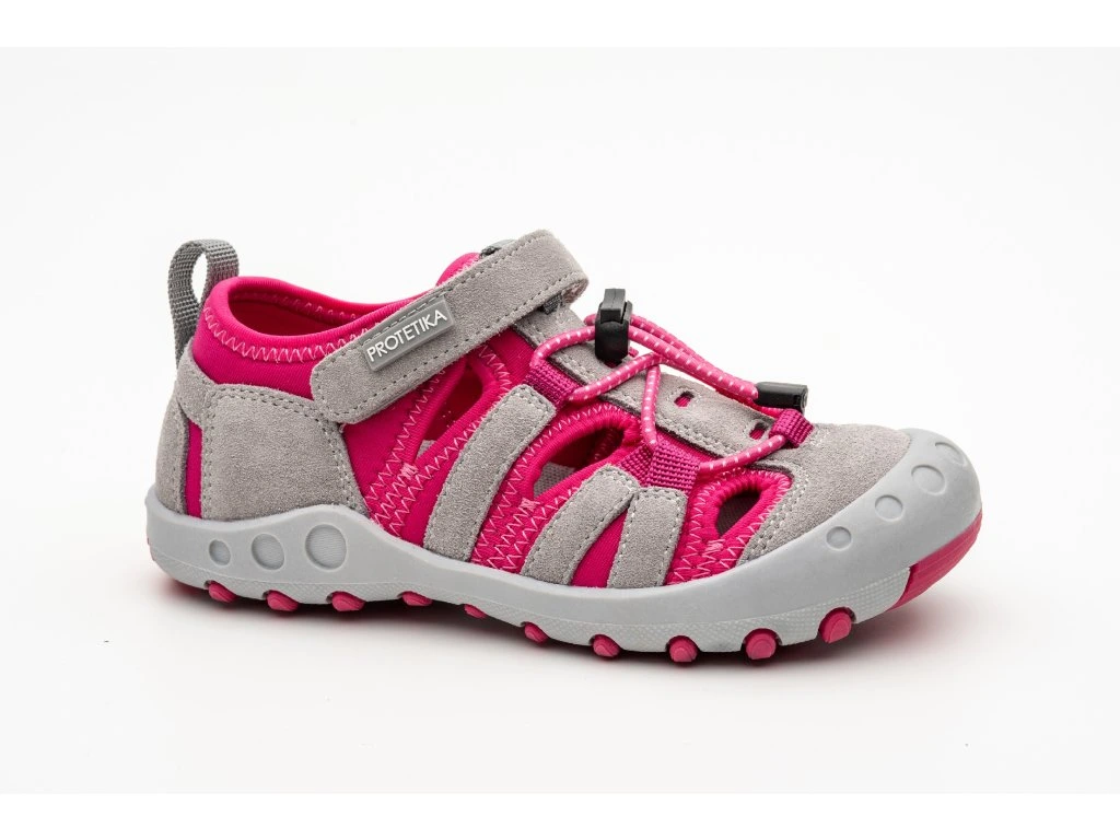 Sportovní sandálky, barva šedá v kombinaci s malinově růžovou, svrchní materiál kůže a textil, uvnitř textil, zapínání na jeden suchý zip, široká špice, ohebná podrážka, vytahovací textilní stélka, Stélka: 27-170 mm, 28-180 mm, 29-185 mm, 30-190 mm, 31-195 mm, 32-200 mm, 33-210 mm, 34-215 mm, 35-22... celý popis
