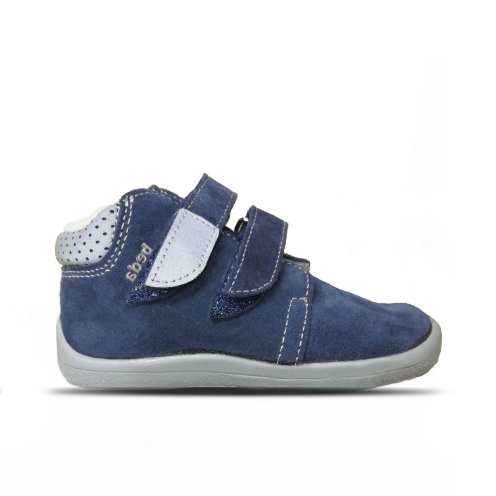 Zimní kotníčkové BAREFOOT boty s membránou TE-POR, barva tmavě modrá, svrchní materiál kůže, uvnitř kožíšek, zapínání na dva suché zipy, široká špice, ohebná flexibilní podrážka, pevnější opatek, vytahovací zateplená stélka, reflexní prvky. Balení obsahuje i stélky navíc.