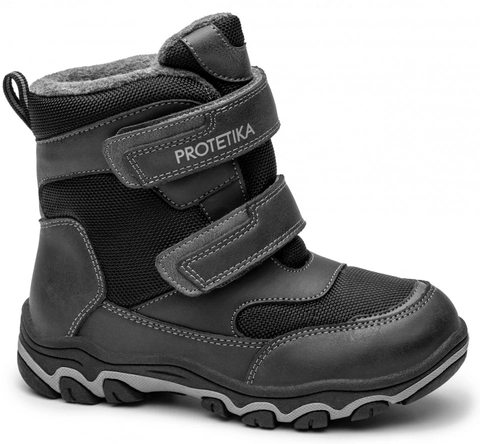 Tvar obuvi podporuje správný vývoj chodidla Vašeho dítěte. Použité atestované přírodní materiály zabezpečují zdravotní nezávadnost obuvi. Zimní boty s membránou PRO-tex, barva černá, svrchní materiál kůže a tvrzený textil, všitý jazyk, zapínání na dva suché zipy, uvnitř teplý kožíšek, zateplená vytahovací stélka s podporou pro klenbu. Pevná pata.