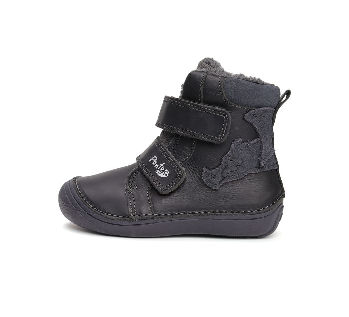 Celokožené zimní boty, barva černá, aplikace draka, zapínání na dva suché zipy, všitý jazyk, ohebná podrážka, pevná pata, uvnitř hustý kožíšek.